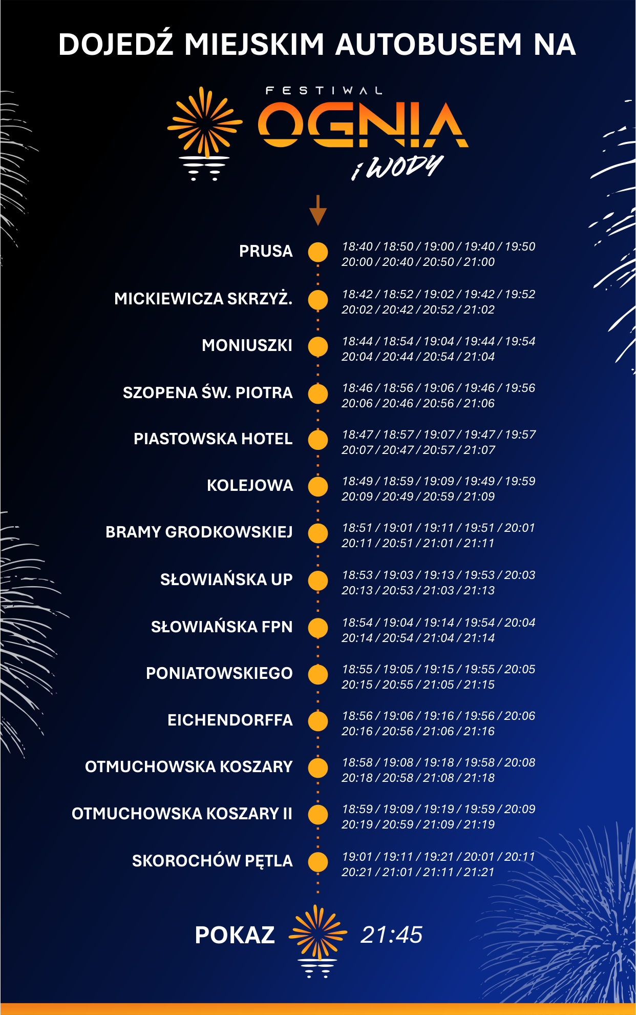 21:45 – gwóźdź programu, czyli artystyczny spektakl pirotechniczno-świetlny.